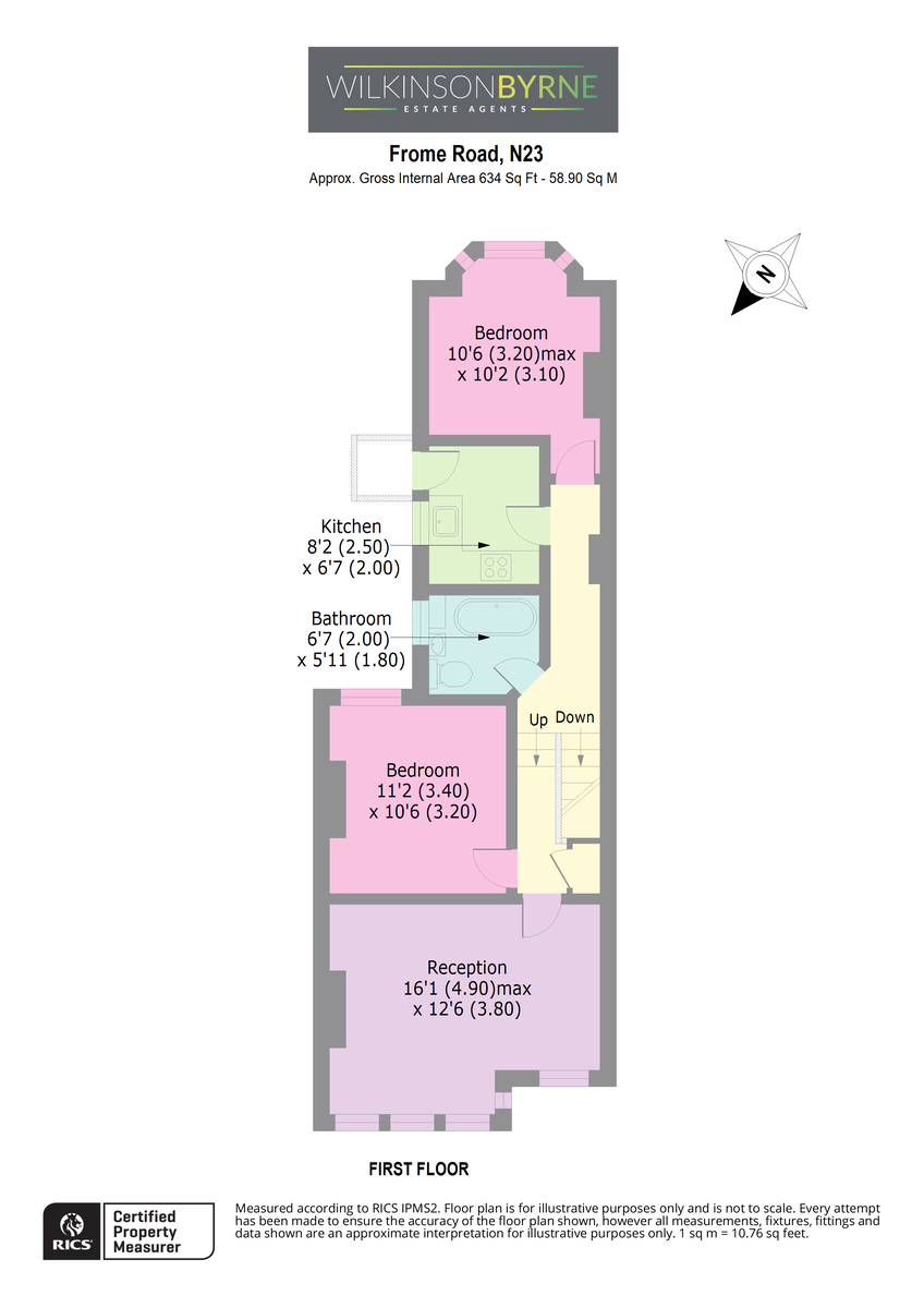 A two bedroom first floor period conversion, located a stone throw away from Turnpike Lane Station. Occupying over 634 Sq ft of living space, the property has been tastefully decorated by the owner, perfect for a professional couple. Benefits include a bay fronted reception room, contemporary kitchen leading a balcony, two double bedrooms and a modern bathroom. Frome Road is ideally situated for the vibrant Wood Green shopping area with all its bars and restaurants and with easy access to Turnpike Lane and Wood Green Underground Station and multiple bus routes. The iconic Westbury Gastro Pub and Restaurant (Westbury Avenue) as well as the green open spaces of Belmont Park with access to both Lordship Recreation grounds and Downhill's Park are all close by. The property is being sold with a new lease term with the share of freehold being passed to the new purchases, once both flats in the building have sold.