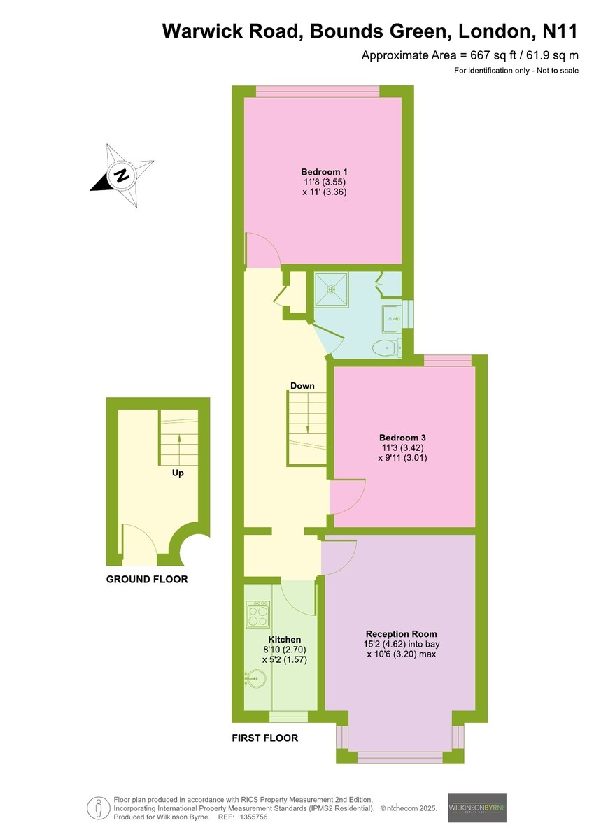 An excellent opportunity to acquire this well-presented first floor Edwardian conversion, ideally positioned in the heart of Bounds Green. The property offers two double bedrooms, a spacious lounge/dining room, a separate fitted kitchen, and a modern three-piece shower room, with further benefits including gas central heating, double glazing, Included is the freehold and potential for a loft conversion (STPP). Ideally located for Bounds Green Underground station (Piccadilly Line, Zone 3) and Bowes Park Mainline station with direct links to Moorgate, the property is also within easy reach of a variety of highly regarded schools and the surrounding selection of cafes, eateries, and amenities. Council Tax Band = C