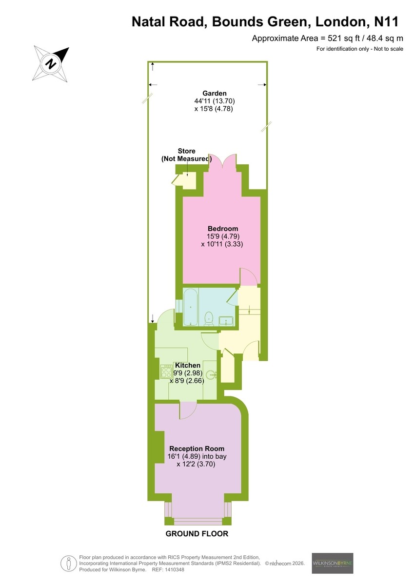 A beautifully presented one-bedroom ground floor Edwardian conversion, ideally located on the sought-after road in Bounds Green. This charming property blends period character with modern comfort, featuring high ceilings, large sash-style windows to the front, new wooden flooring throughout, and offering generous light and proportions throughout, further enhanced by a feature fireplace with a traditional brick hearth, creating a characterful focal point. The well-appointed kitchen provides ample storage and worktop space. The double bedroom is quietly positioned at the back and offers comfortable accommodation with room for wardrobes and furnishings, as well as a pleasant view over the garden. A contemporary bathroom suite completes the internal layout. Situated within easy reach of Bounds Green Underground Station and Bowes Park Overground, the property enjoys excellent transport links into Central London, as well as convenient access to local shops, cafés, and green spaces.