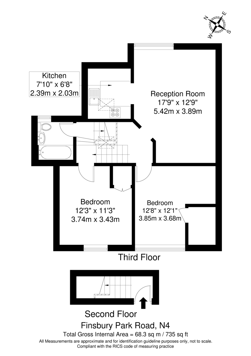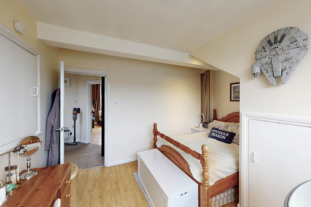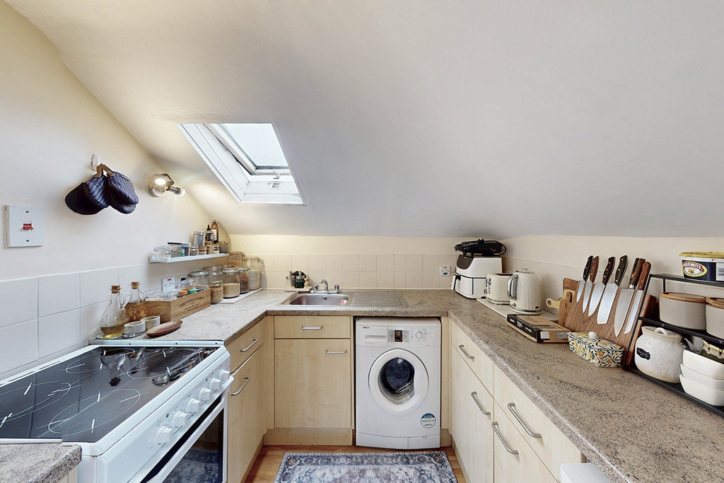 The entrance to the flat leads to its own internal staircase, creating a natural sense of separation between living and sleeping spaces. The property comprises of two double bedrooms, a spacious living room opening through to a well laid out fitted kitchen, benefits from a family bathroom with a window providing natural light and ventilation.